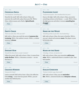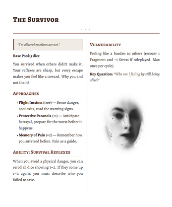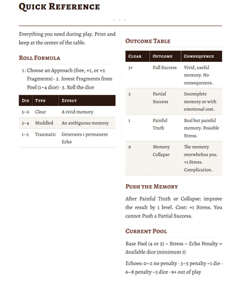 - Full rules (the Fragments & Dice system, Stress, Echoes, Breakdown)